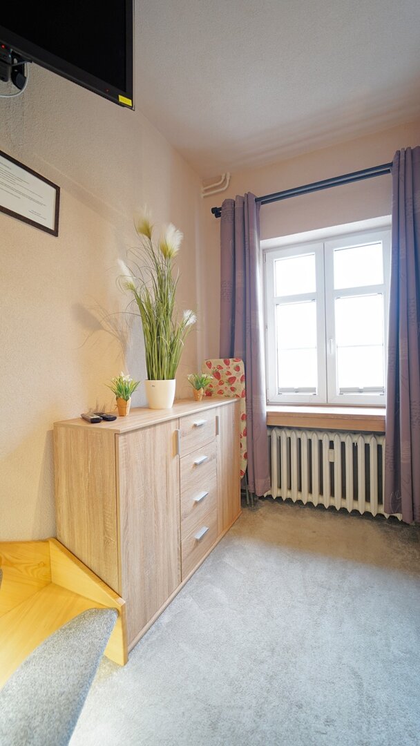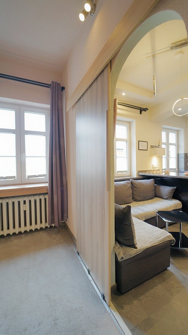 Apartment located in the very center of Jelenia Góra, in the Old Town. The interior is dark and spacious, featuring a unique style. Comfortably furnished, with a total area of 35 m².