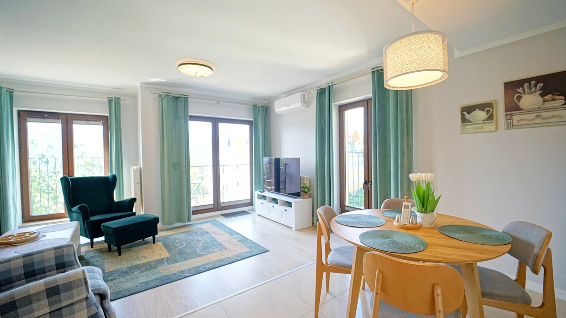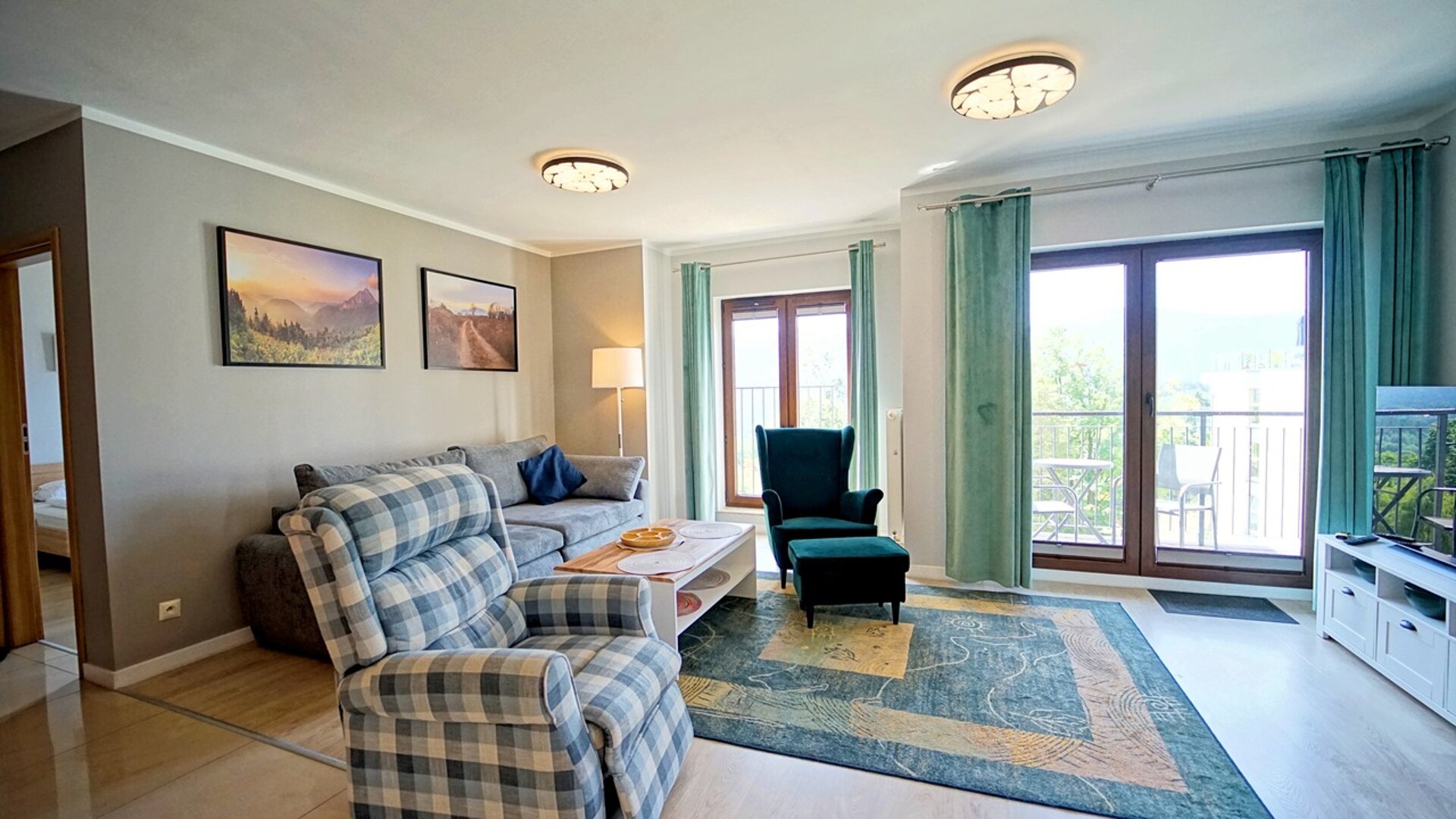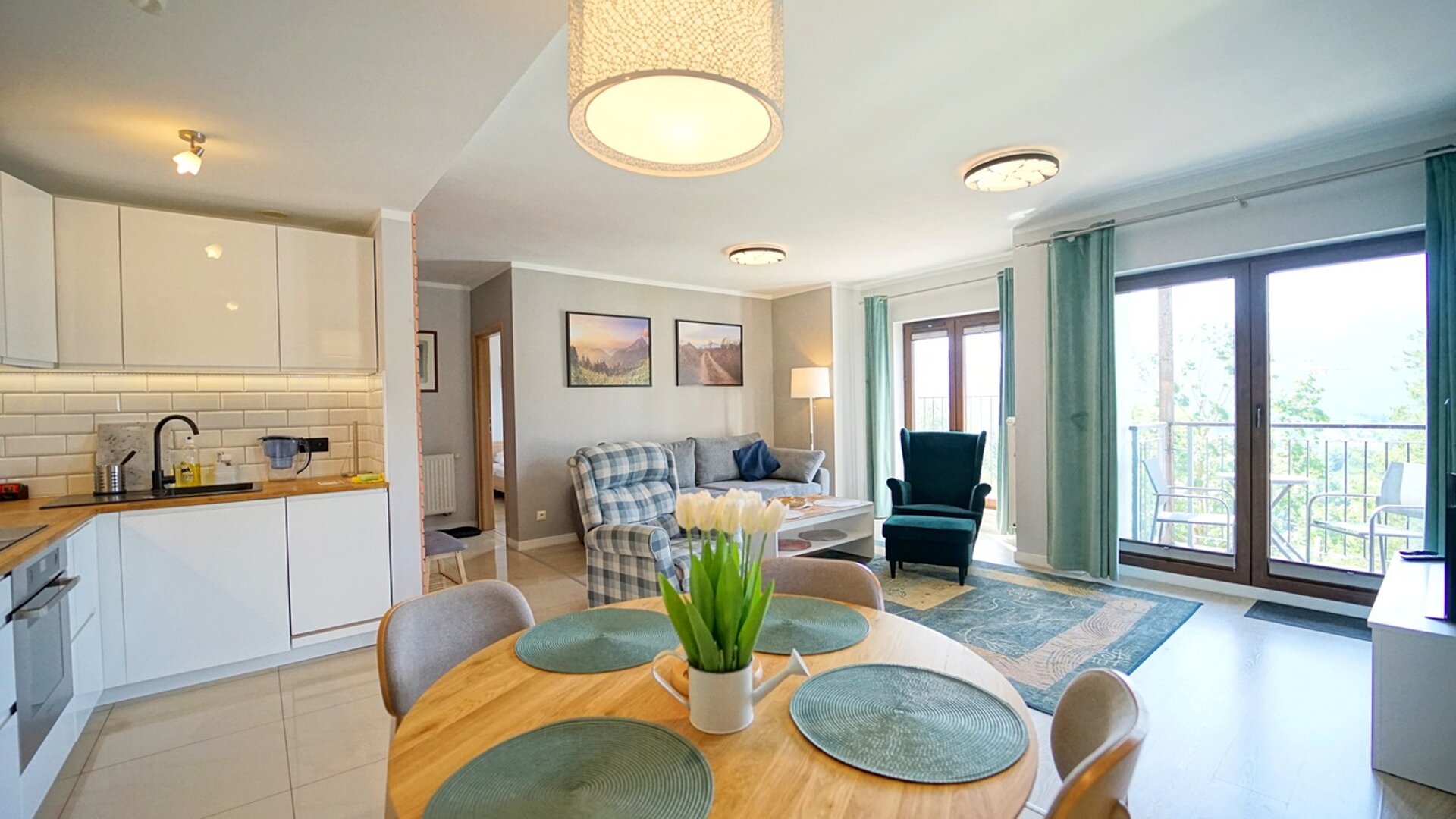 Apartament zlokalizowany jest w nowoczesnym apartamentowcu z windą. Z okien apartamentu roztacza się piękny widok na pasma gór. Obiekt usytuowany jest przy lesie nieopodal płynie strumyk.