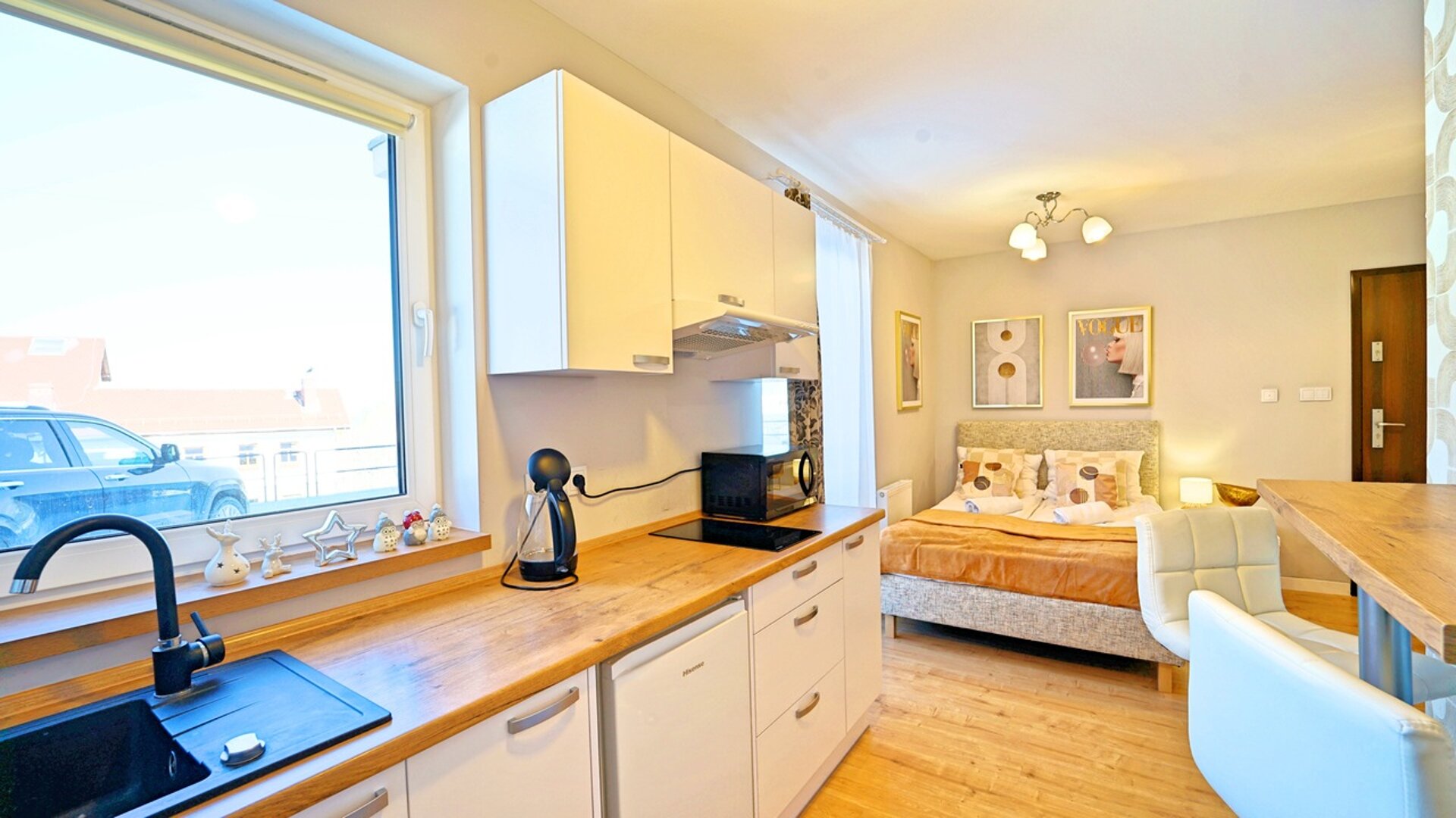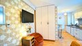 Jednopokojowe studio o powierzchni 20 m², idealne dla 2 osób, znajduje się na parterze apartamentowca. Apartament jest wyposażony w dwie rozkładane sofy dwuosobowe, co zapewnia elastyczność aranżacji przestrzeni. Aneks kuchenny umożliwia przygotowanie posiłków, a nowoczesna łazienka zapewnia pełen komfort. Do dyspozycji Gości jest także bezpłatne Wi-Fi, co pozwala na wygodny dostęp do internetu.
